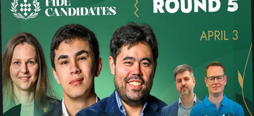 Следите за событиями 5-го тура Турнира претендентов 2024! Важнейшие шахматные партии в самом разгаре, и вы можете быть в курсе всех новостей в режиме реального времени. Присоединяйтесь к нам, чтобы не пропустить ни одного хода и узнать результаты поединков, приближающих шахматистов к матчу за звание чемпиона мира.